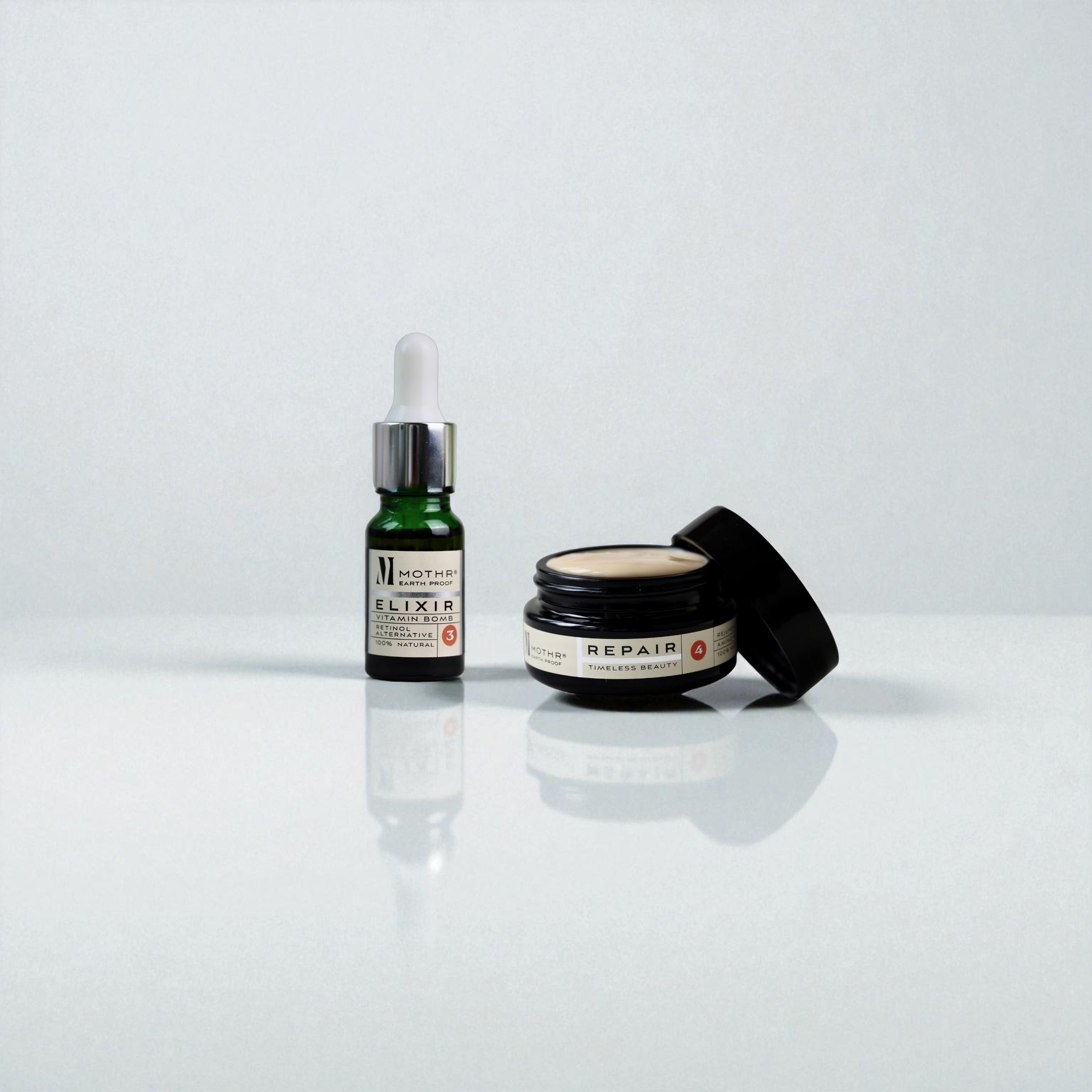 Het Night Repair Duo – met ELIXIR Vitamin Bomb en REPAIR Timeless Beauty – voedt, verstevigt en vernieuwt je huid tijdens de nacht.